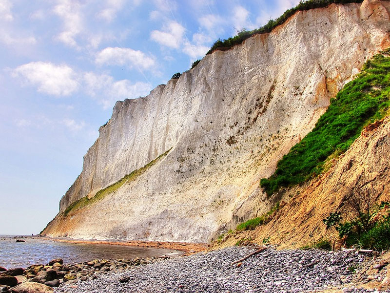 Wyrastający z Morza Bałtyckiego klif o wysokości 102-128 metrów i długości 7 kilometrów, Møns Klint, znajduje się na wschodnim wybrzeżu wyspy Møn. Białe ściany klifu kontrastują z niebiesko-zielonymi odcieniami morza oraz zielonymi lasami bukowymi od góry.